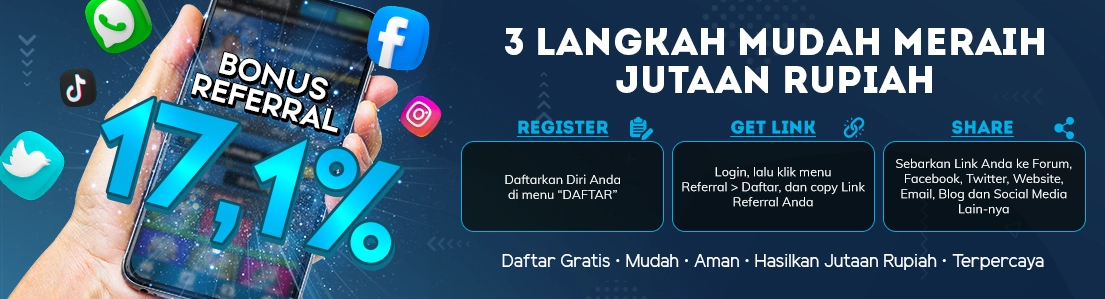 Referral system tidak dipungut biaya apapun. Hanya dengan modal online saja